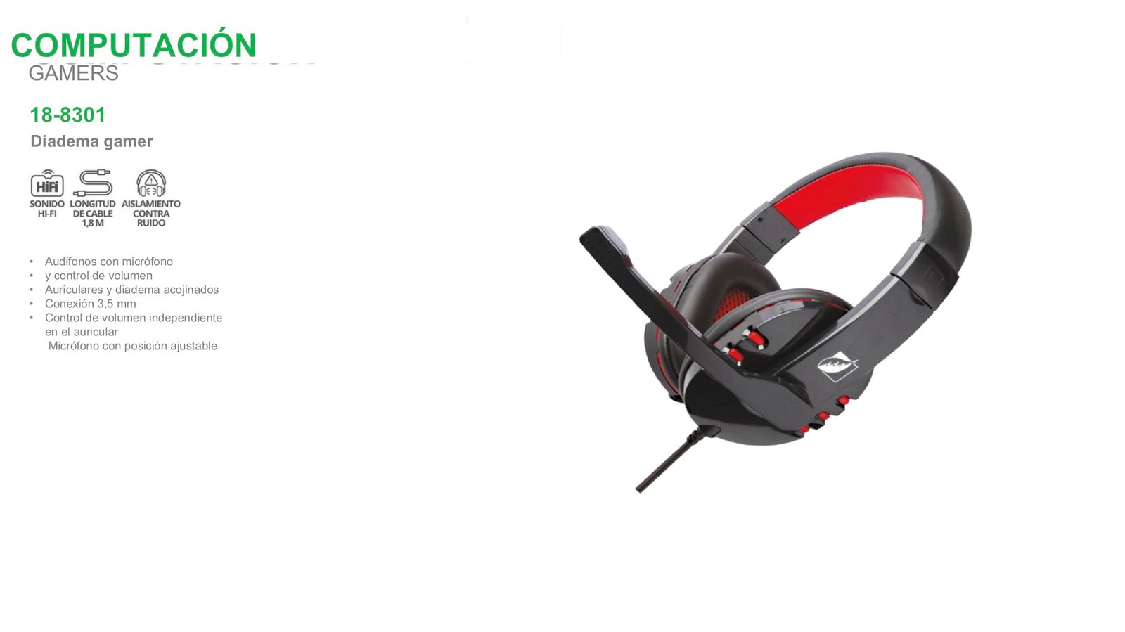 El Mitzu 18-8301 es un modelo de audífonos tipo diadema diseñados para gamers o uso multimedia con micrófono integrado.