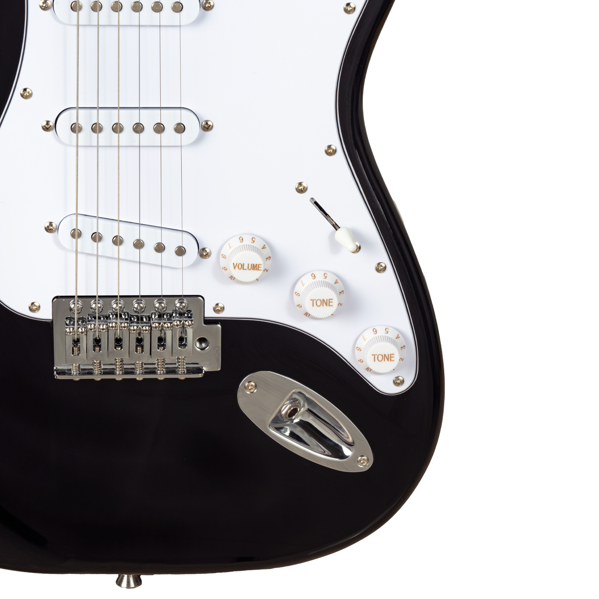 La guitarra eléctrica Mitzu KGE-3901 se presenta como una opción versátil y ergonómica, diseñada para satisfacer las necesidades de músicos ambidiestros. Con su cuerpo en forma Stratocaster y acabado negro, este modelo destaca por su comodidad al tocar. Su palanca agrega funcionalidad lo que la convierte en un instrumento atractivo tanto para principiantes como para guitarristas experimentados.