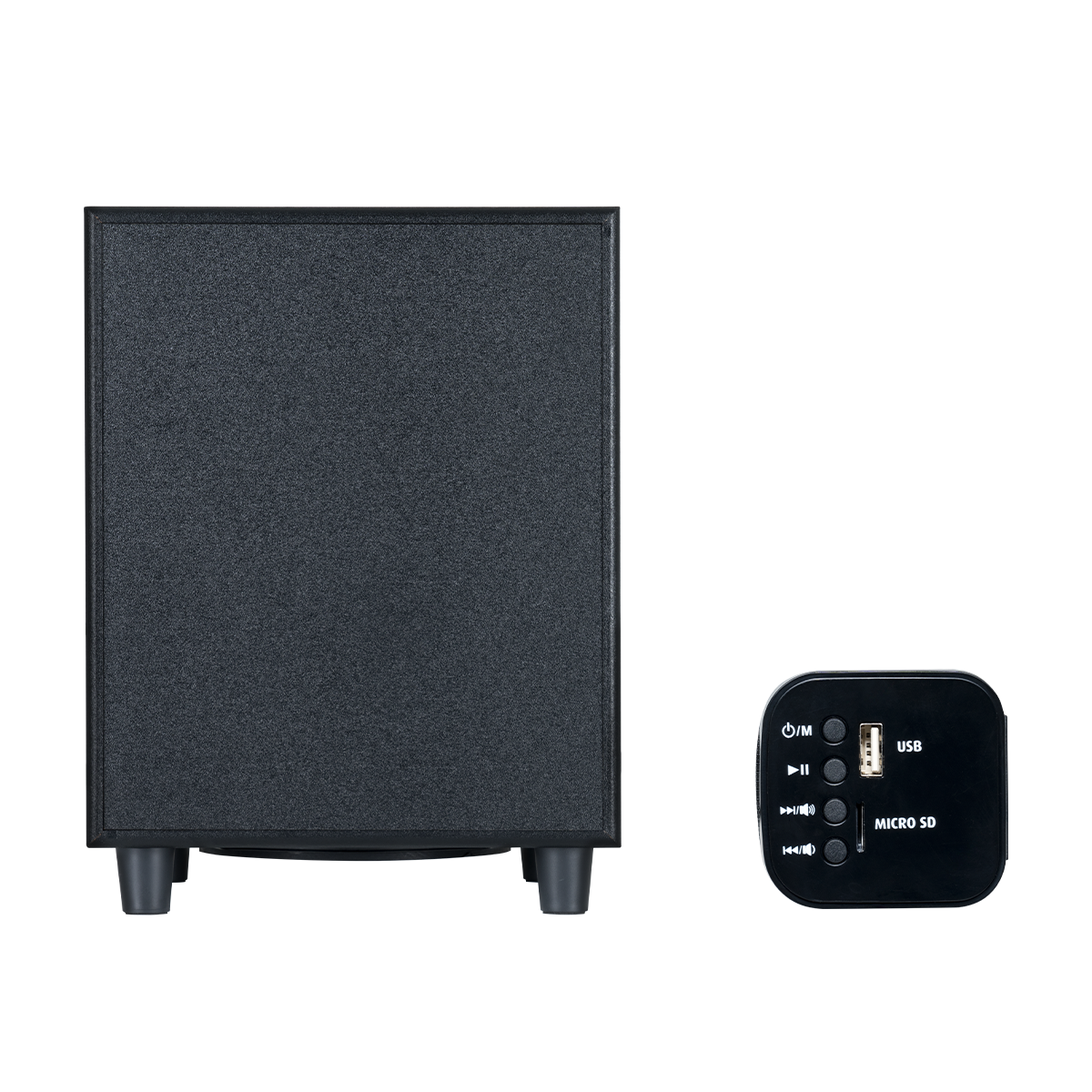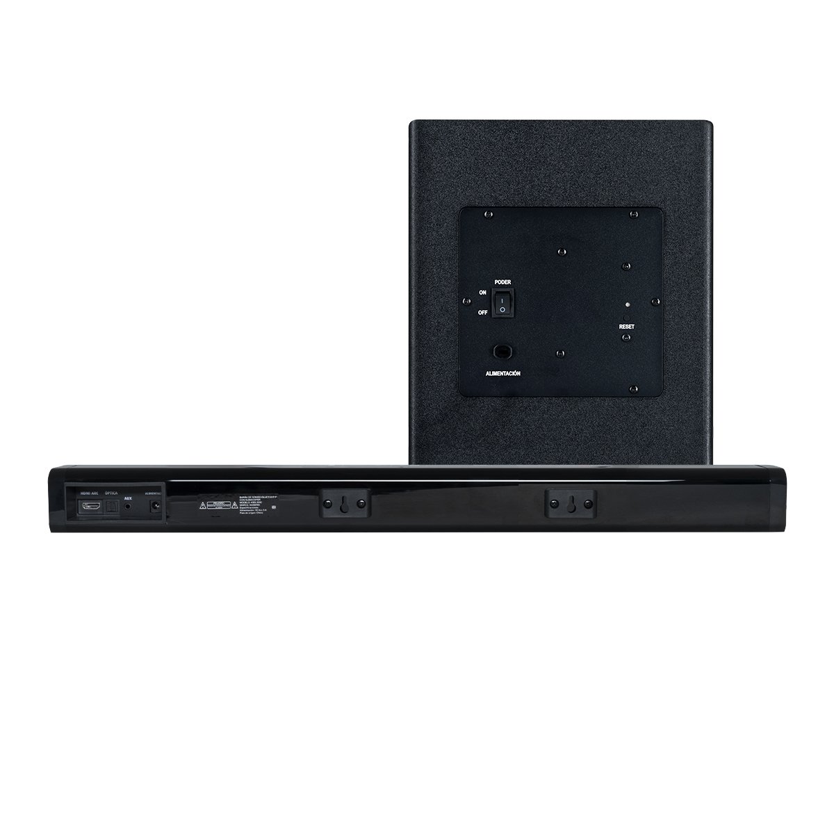Este puerto es ideal para integrarse con televisores y otros dispositivos multimedia modernos que soportan audio óptico.|| H4-Diseño Elegante y Compacto|| Su diseño estilizado y compacto permite integrarse fácilmente en cualquier configuración de entretenimiento. La barra de Sonido se adapta discretamente a tu espacio, proporcionando una mejora significativa en la calidad del Sonido sin ocupar mucho espacio. La barra de Sonido está diseñada para una instalación sencilla y rápida. Con opciones de conectividad adicionales y controles intuitivos, puedes configurarla sin complicaciones y comenzar a disfrutar de un audio de alta calidad en poco tiempo.|| H4-Sonido Envolvente y Potente|| El sistema de 2.1 canales con subwoofer ofrece un Sonido envolvente que mejora la experiencia auditiva, proporcionando graves profundos y agudos claros que enriquecen cualquier tipo de contenido. El puerto óptico asegura una transferencia de audio digital sin pérdida, ofreciendo una calidad de Sonido superior y compatible con los últimos dispositivos de entretenimiento.|| H4-Diseño Compacto y Estilizado|| Su diseño elegante se integra fácilmente en cualquier entorno, mejorando la calidad del audio sin comprometer el estilo o el espacio disponible. La barra de Sonido es fácil de instalar y utilizar, permitiéndote disfrutar de una mejora inmediata en la calidad del Sonido con una configuración mínima.||