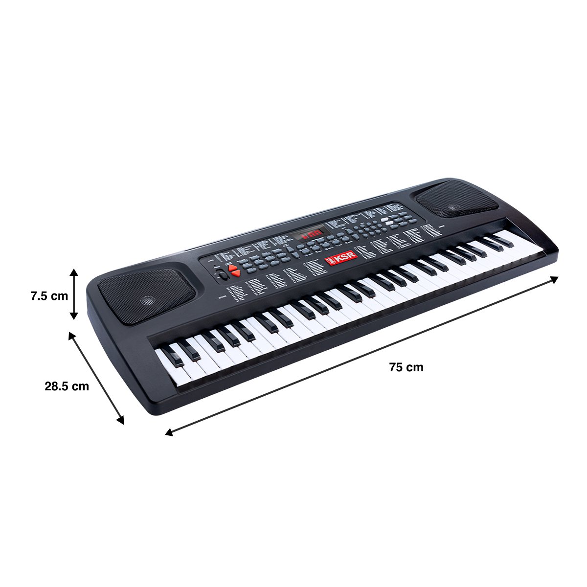 Con una profundidad de 75 cm, altura de 9 cm y un peso de 2.06 kg, este teclado es compacto y fácil de transportar, ideal para llevarlo a tus clases de música o presentaciones en vivo. Incluye un respaldo para partituras y un adaptador para conectar, para que puedas empezar a tocar de inmediato sin necesidad de comprar accesorios adicionales.