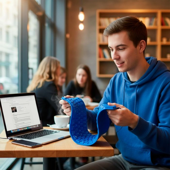 Teclado flexible multimedia alámbrico, azul